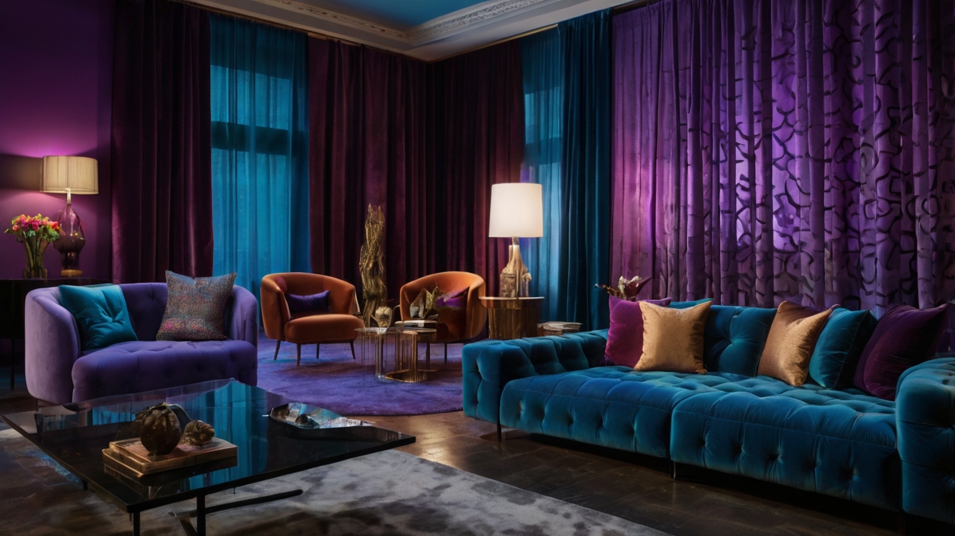 Pair velvet upholstery with lacquered surfaces or brushed brass finishes.